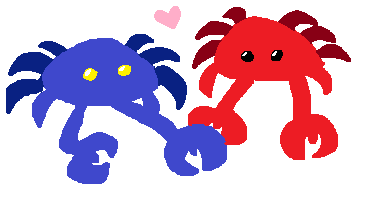 The Friendship Tour 2009 mascots, illustrated poorly in MSPaint. I am incredibly enamored by these silly crabs. I will definitely draw them more often.